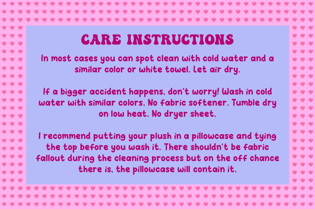 I recommend putting your plush in a pillowcase and tying the top before you wash it. There shouldn't be fabric fallout during the cleaning process but on the off chance there is, the pillowcase will contain it.